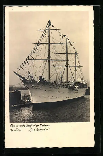 AK Hamburg, Schwimmende Jugendherberge Hein Godenwind in Flaggengala