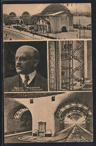AK Hamburg-St. Pauli, Elbtunnel, Erbauer Baurat Wendemuth