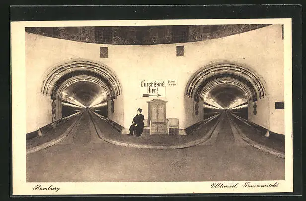 AK Hamburg-St. Pauli, Elbtunnel, Innenansicht