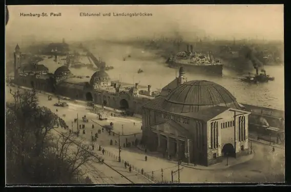 AK Hamburg-St. Pauli, Elbtunnel und Landungsbrücken