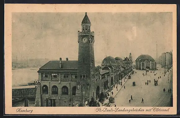 AK Hamburg-St. Pauli, Landungsbrücken mit Elbtunnel