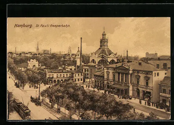 AK Hamburg, St. Pauli Reeperbahn, Strassenbahn