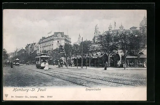 AK Hamburg-St. Pauli, Reeperbahn mit Strassenbahn