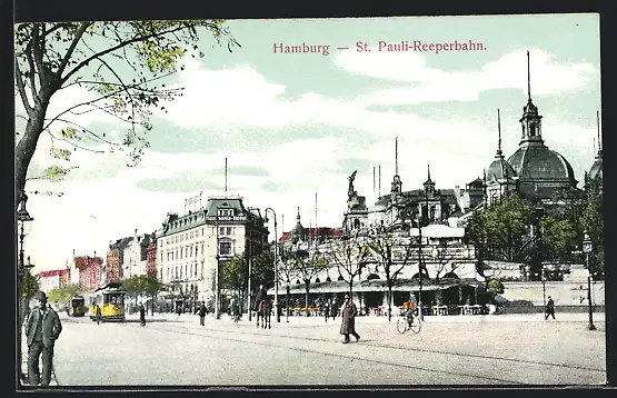 AK Hamburg, St. Pauli, Reeperbahn mit Strassenbahn