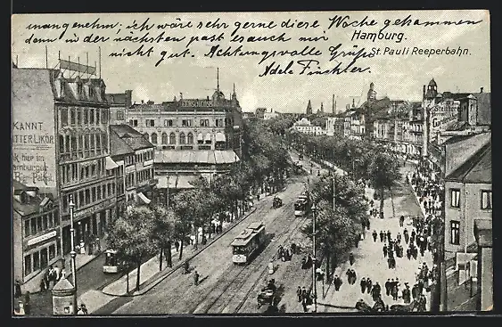 AK Hamburg, St. Pauli Reeperbahn mit Strassenbahn