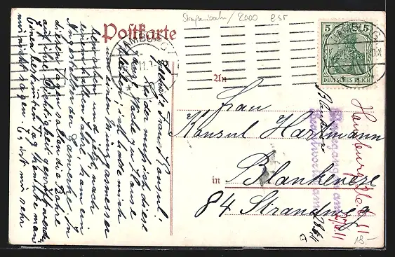 gelaufen 1911, Eckknick oben li., guter Zustand