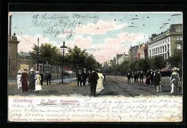 AK Hamburg-St. Pauli, Strasse Reeperbahn mit Passanten