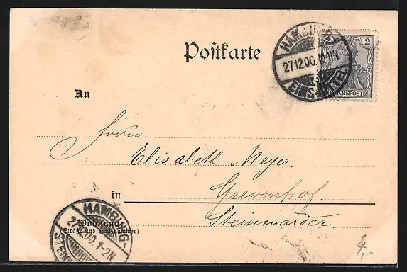 alte Ansichtskarte, gelaufen 1900, guter Zustand