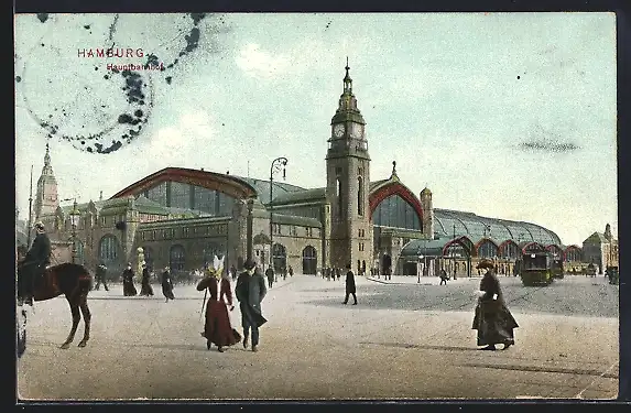 AK Hamburg-St.Georg, Partie am Hauptbahnhof, Leute, Strassenbahn