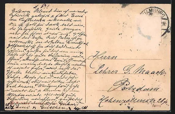 alte Ansichtskarte, gelaufen, Briefmarke entfernt, rückseitig Oberflächenschaden, Stempelspur, Eckknicke oben li. und unten re., guter Zustand