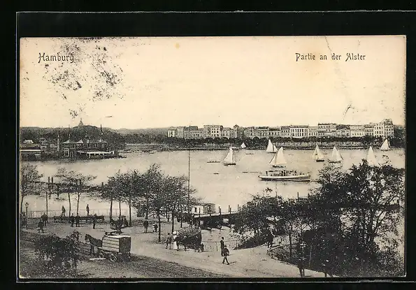 AK Hamburg-St.Georg, Partie an der Alster mit Booten