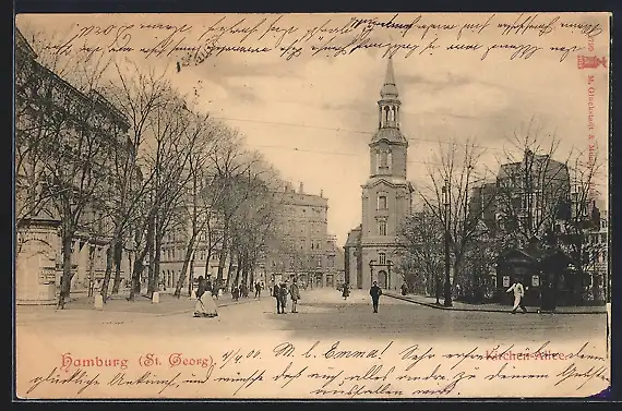 AK Hamburg-St.Georg, St. Georg, Kirchenallee mit Kirche