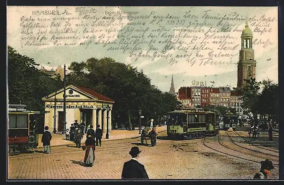 AK Hamburg-St.Pauli, Beim Millernthor, Strassenbahn