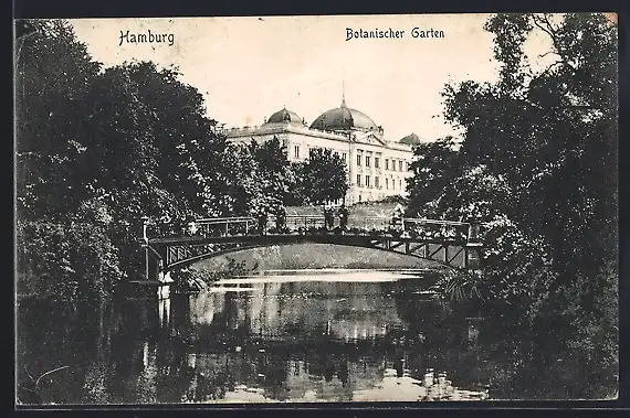 AK Hamburg-St.Pauli, Botanischer Garten mit Brücke