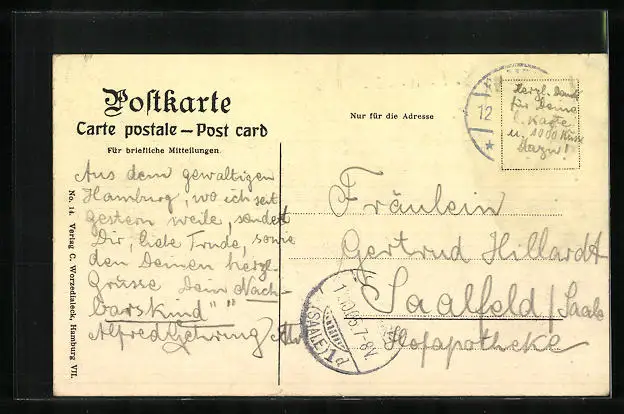 alte Ansichtskarte, gelaufen 1905, guter Zustand