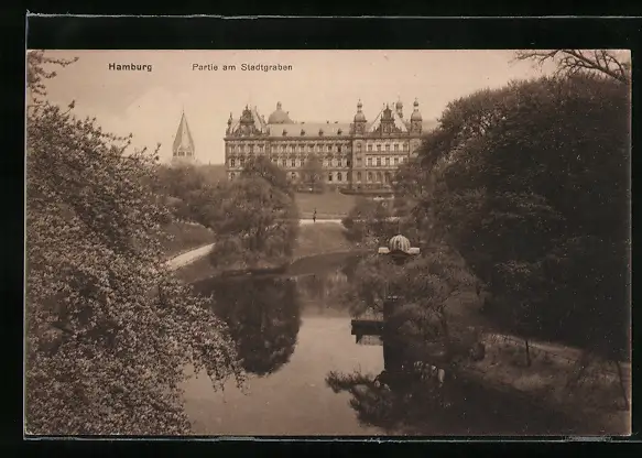 AK Hamburg-St.Pauli, Flusspartie am Stadtgraben