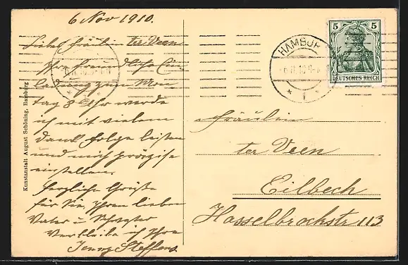 alte Ansichtskarte, gelaufen 1910, Stempelspur, guter Zustand