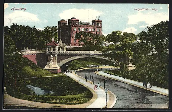 AK Hamburg-St.Pauli, Helgoländer Weg mit Brücke