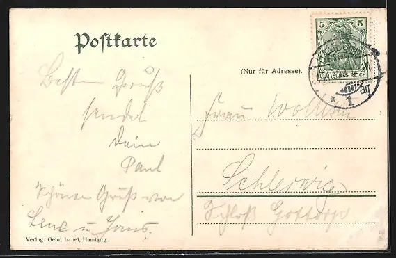 alte Ansichtskarte, gelaufen 1909, Eckknick unten re., guter Zustand