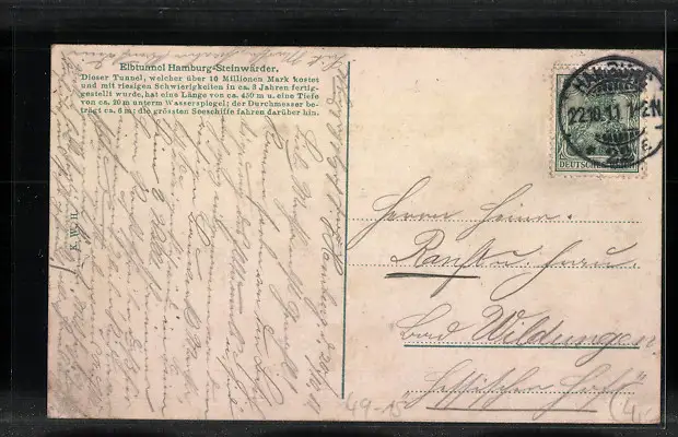 gelaufen 1911, Eckknicke re. unten, Stempelspur, guter Zustand