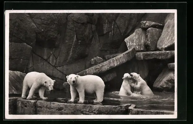 AK Hamburg-Stellingen, Eisbären in einem Bassin im Tierpark