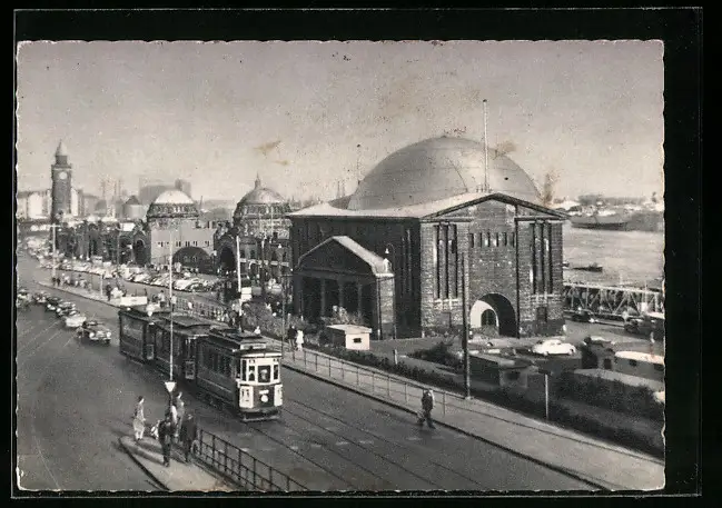 AK Hamburg, Strassenbahn an den Landungsbrücken