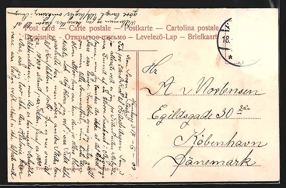 alte Ansichtskarte, gelaufen 1909, Briefmarke entfernt, rückseitig Oberflächenschaden, guter Zustand
