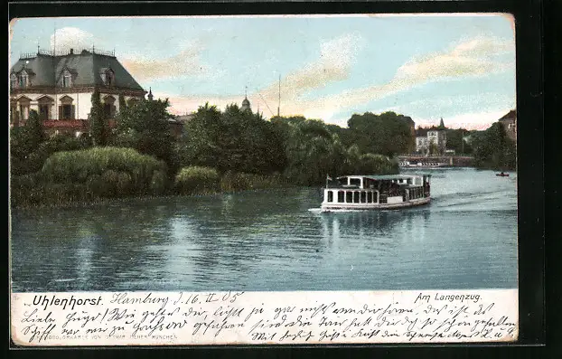 AK Hamburg-Uhlenhorst, Am Langenzug mit Boot