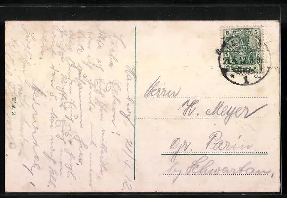alte Ansichtskarte, gelaufen 1912, Eckknick oben re., guter Zustand