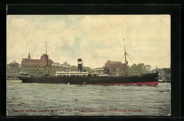 AK Hamburg, das Handelsschiff Vienna mit der Stadt im Hintergrund