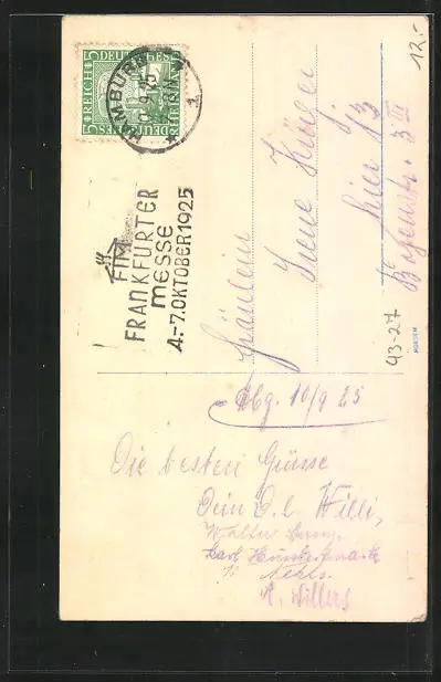 alte Ansichtskarte, gelaufen 1925, Bugspur unten, guter Zustand