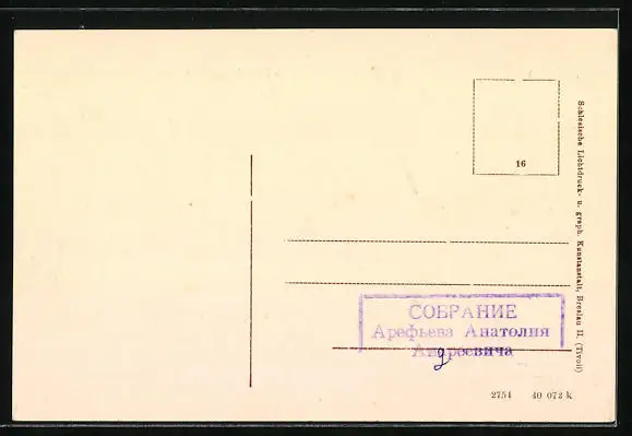 Personenbezogene Daten auf der Rückseite der Karte wurden durch blauen Textmarker unkenntlich gemacht. Die blauen Stellen sind auf die Vorderseite durchgeweicht und wirken sich negativ auf das Postkartenfoto aus