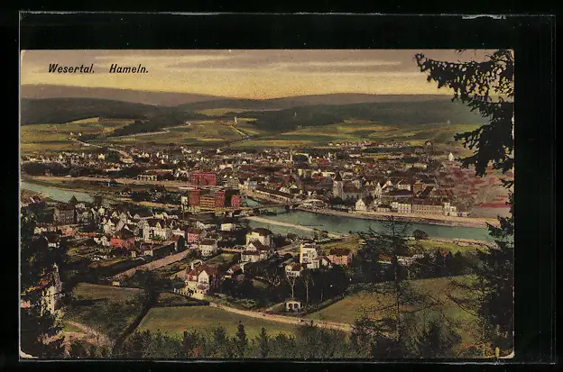 AK Hameln, Generalansicht der Stadt im Wesertal