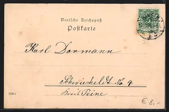 alte Ansichtskarte, gelaufen 1898, Eckknick re. unten, Einriss li. oben, guter Zustand