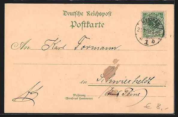 alte Ansichtskarte, gelaufen 1900, Eckknick li. unten, guter Zustand