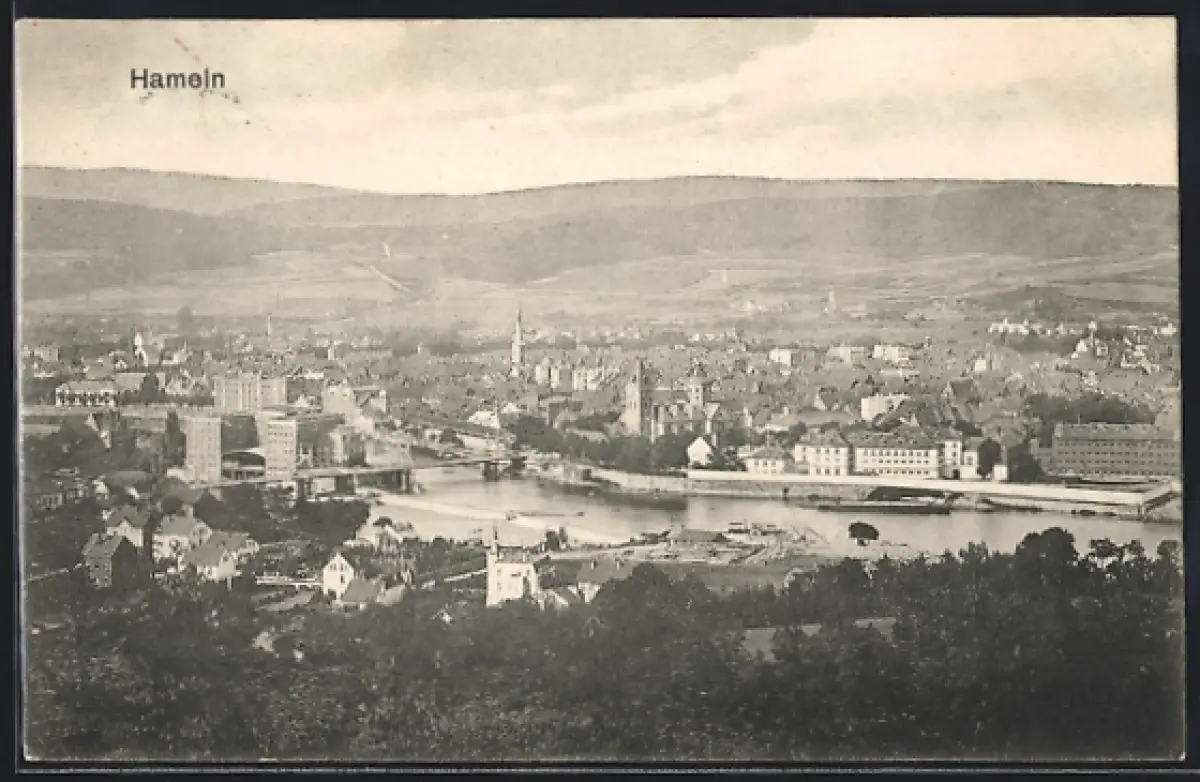 AK Hameln, Stadtansicht mit Weser und Altstadt