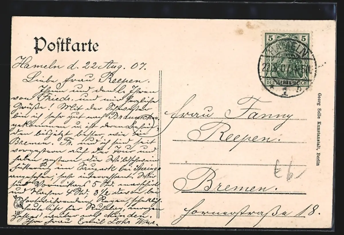 alte Ansichtskarte, gelaufen 1907, guter Zustand