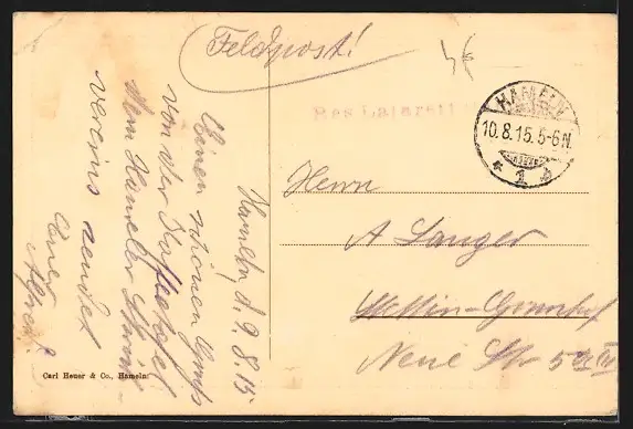 alte Ansichtskarte, gelaufen 1915, Eckknick re. oben, guter Zustand