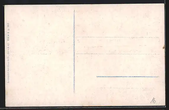 Personenbezogene Daten auf der Rückseite der Karte wurden durch blauen Textmarker unkenntlich gemacht. Die blauen Stellen sind auf die Vorderseite durchgeweicht und wirken sich negativ auf das Postkartenfoto aus