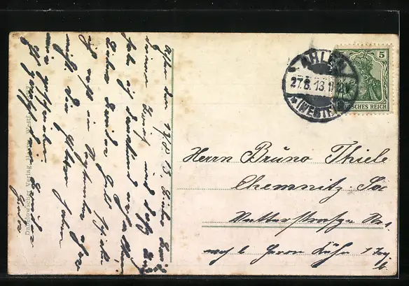 gelaufen 1913, Eckknicke re. u. unten li., guter Zustand