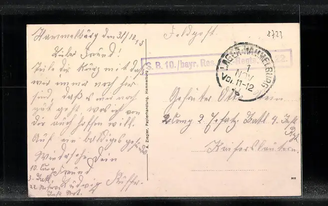 alte Ansichtskarte, gelaufen 1915 als Feldpost, guter Zustand