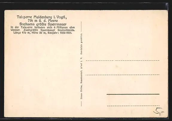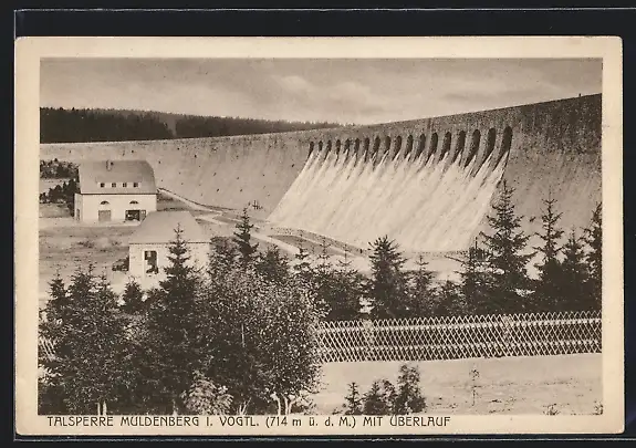 AK Hammerbrücke, Talsperre Muldenberg mit Überlauf