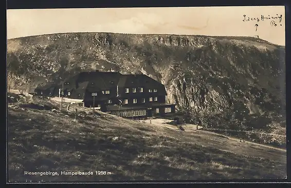 AK Hampelbaude /Riesengebirge, Partie an der Baude