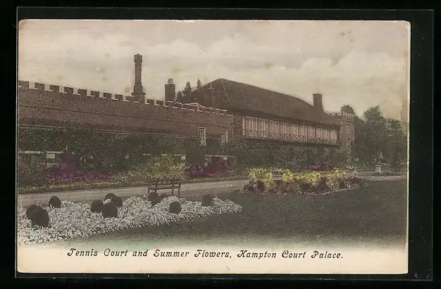 AK Hampton /London, Court Palace, Tennis Court and Summer Flowers