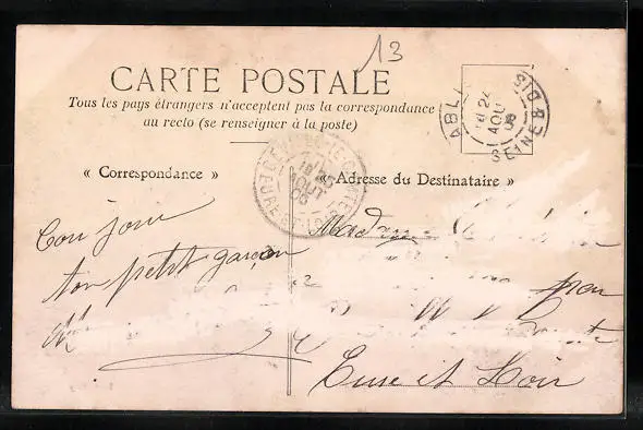 alte Ansichtskarte, gelaufen, rückseitig Oberflächenschaden, Eckknick oben li., guter Zustand