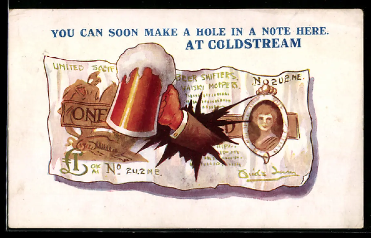 AK Hand mit Bierkrug durch Geldnote