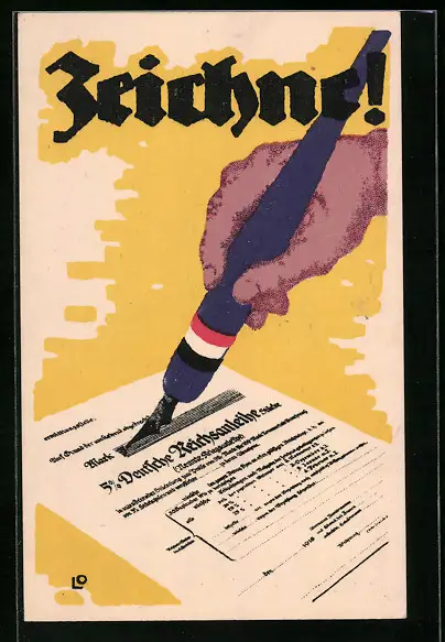 AK Hand mit Federhalter zeichnet Kriegsanleihe