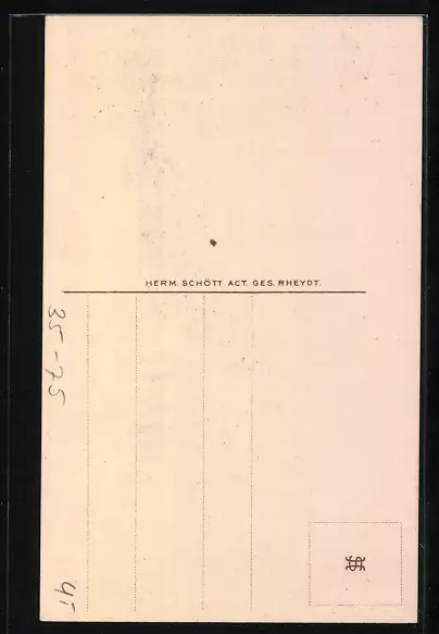 Personenbezogene Daten auf der Rückseite der Karte wurden durch blauen Textmarker unkenntlich gemacht. Die blauen Stellen sind auf die Vorderseite durchgeweicht und wirken sich negativ auf das Postkartenfoto aus