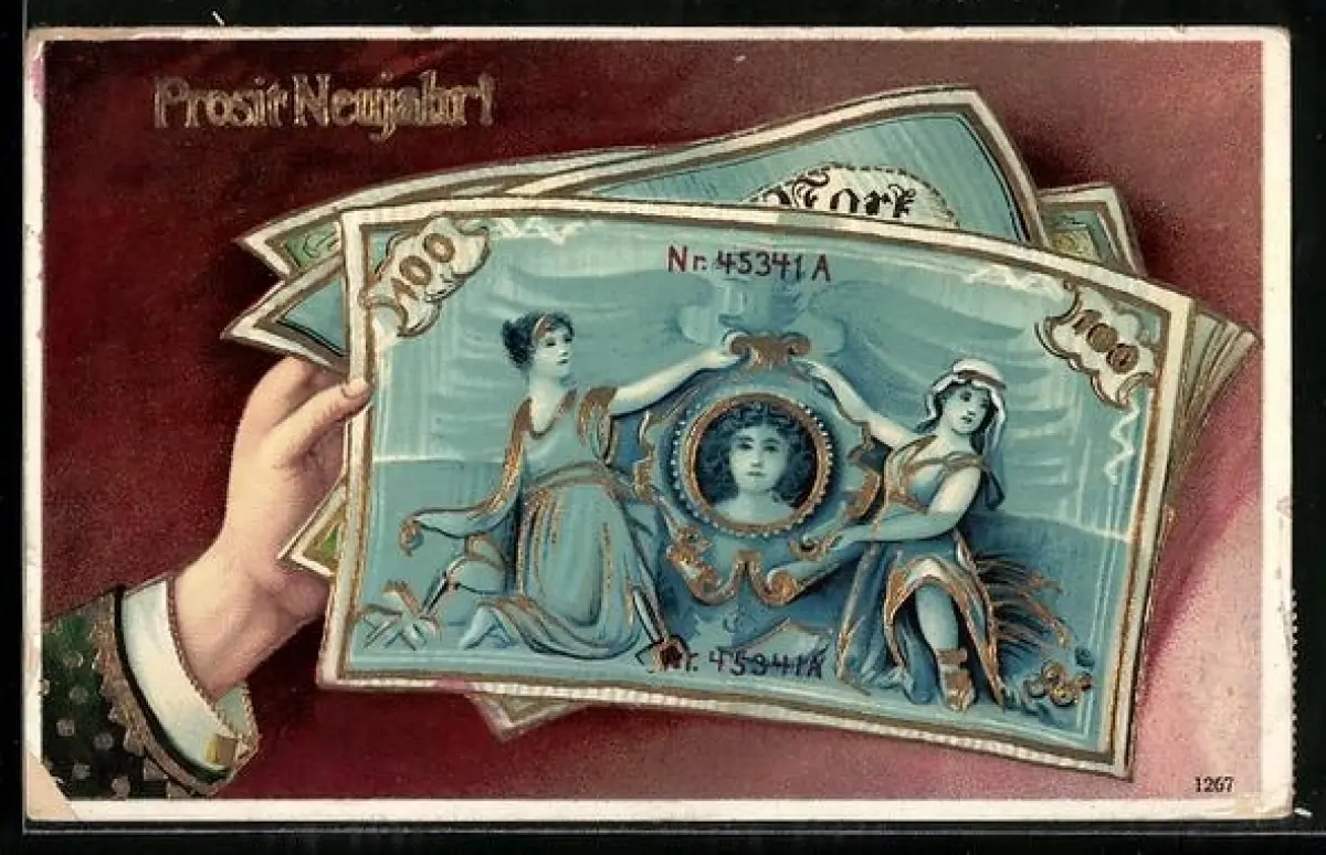 AK Hand mit Geldscheinen, Neujahrsgruss
