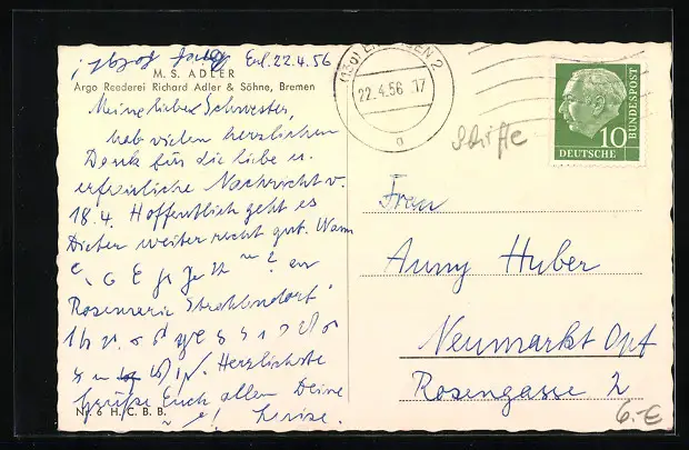 alte Ansichtskarte, gelaufen 1956, guter Zustand
